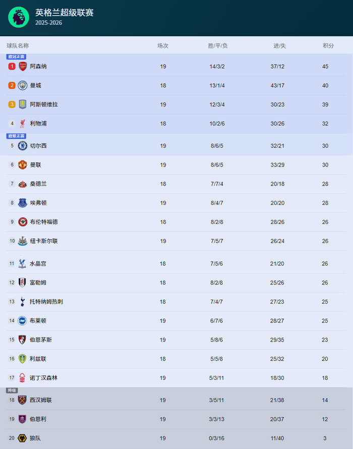 最终,阿森纳主场4-1终结阿斯顿维拉各项赛事11连胜。在英超积分榜上,阿森纳领先优势暂时扩大到了5分,锁定半程冠军。