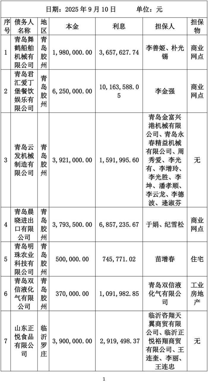 4.如清单中债务人、债权金额、担保人及担保物等信息与事实不符的,以相关合同、生效法律文书等为准。
