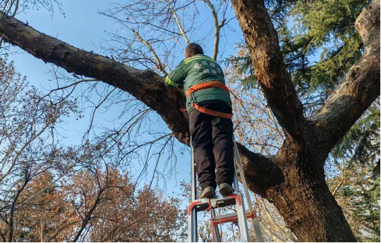 冬季是园林绿化养护的关键时期,在新城路上,园林技术人员正在开展冬季修剪等精细化养护工作。他们手持高枝锯,对树木的干枯枝、下垂枝、过密枝、枯病枝进行规范修剪,并及时进行树枝清运。同时,为迎接元旦假期,园林中心组织人员对城区各游园、广场、沿河绿地、园路的落叶、垃圾进行持续清扫、捡拾与集中清运,对游园设施进行维修,全力保障了景观环境整洁。