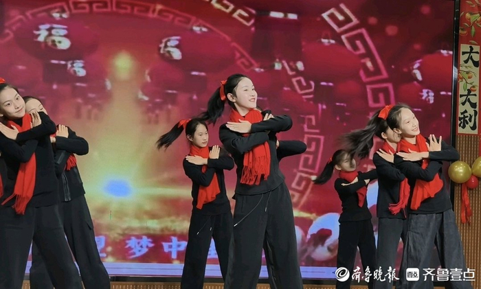 演出正式开始,精灵舞社舞蹈团伴随着欢快活泼的《好运要来到》音乐蹦跳登场,她们身着红衣,梳着高高的发髻,舞步轻灵,将新年的祝福与喜悦通过舞蹈动作传递给了现场每一位观众。