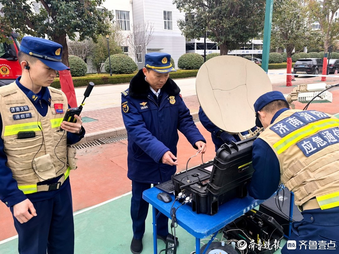 在济南支队的训练场上,冬季应急通信岗位练兵正在进行。指挥车内,操作员娴熟切换多套通信系统,实现语音、数据、图像的实时传输与融合调度。