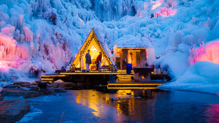 浪漫达高潮:梦幻冰瀑邂逅炽热炉火,定格冬日终极浪漫