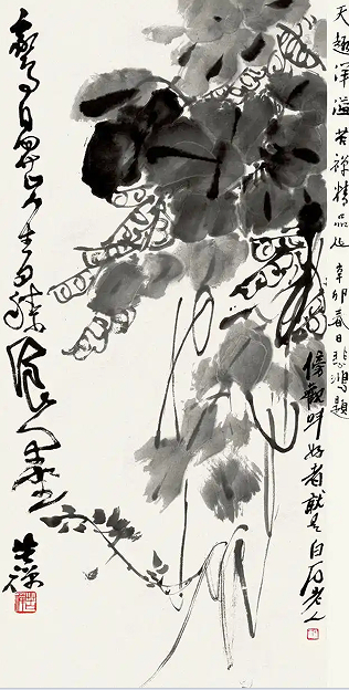 《扁豆图》1951年,齐白石在许麟庐开办的和平书画店看到李苦禅所作《雄鹰图》,连连称好,借回家去看了数日。还亲自看着李苦禅画《扁豆图》,并题跋:“傍观叫好者,就是白石老人。”齐白石晚年曾对他的小女齐良芷说:“今后的笔墨就要看苦禅的了!”画家骆拓亦曾回忆:“白石师在艺专授课时,曾谓我说:‘你们数十年后便知,白石后笔墨当推苦禅。’”