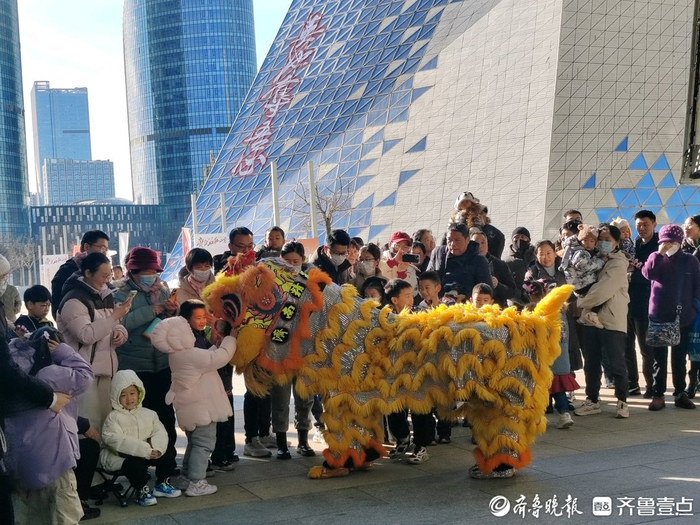 当天上午,游园会在欢腾的锣鼓声中拉开帷幕。济南市文化馆主入口处,一对威武灵动的醒狮在广大市民的翘首期盼中腾跃登场。摇头、眨眼、跳跃、腾挪,金红相间的狮身随着鼓点起伏,传递出辞旧迎新的喜悦与祝福。现场穿插“祥狮献瑞”派发甜糖、“携手接福”齐展春联等环节,让市民游客在欢声笑语中接住满满福气。