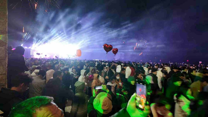 山东蒙山旅游集团有限公司副总经理、山东蒙山袁家村商业运营管理有限公司董事长兼法定代表人,负责蒙山胜境度假区运营管理的公维营手机显示,自2025年12月31日18时许,开始“上人”,度假区内瞬时人数由5000人、6000人……一路增长,结束一天工作后,晚饭后的周边居民不断向此聚集。