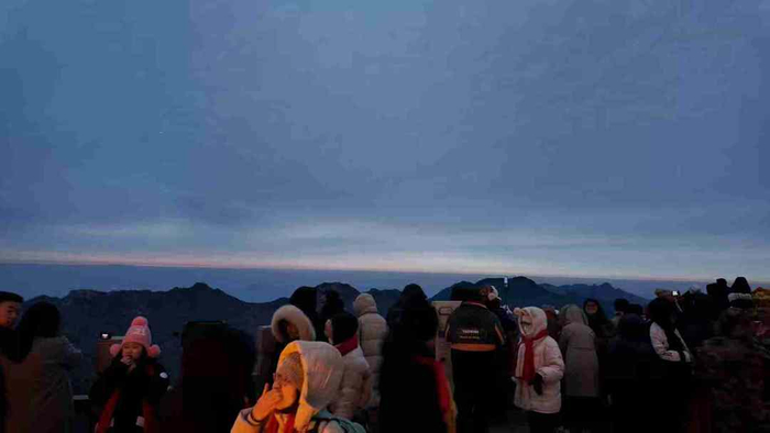 此次蒙山“跨年之旅”继续进行,接下来的2026年1月1日凌晨,会场转至龟蒙景区进行。在此举行的观日活动尽管没有前一夜人多,但依然壮观。