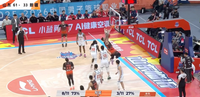 对新疆男篮来说,雪上加霜的是,进攻本就不顺,防守强度也没能匹配。山东男篮在立足防守的同时积极发动反击,打出水银泻地般的进攻,半场比赛就奠定了28分的巨大优势。