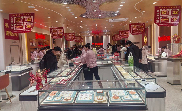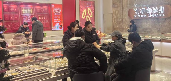 1月2日,记者实地走访济南部分品牌金店,发现尽管国际金价创新高,但部分门店的促销活动仍吸引了大量消费者。