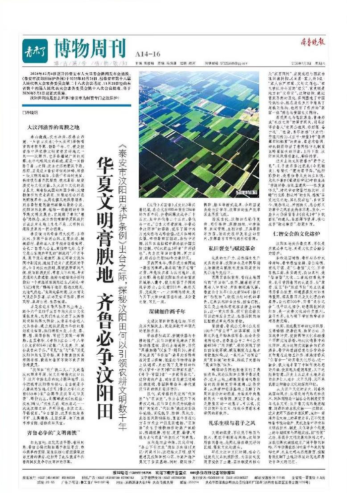 综观古代,汶阳田在轮作复种、间作套种、深耕细耙、中耕除草、田间管理、水利兴修、工具革新等方面,始终走在华夏农业的前列,发挥着不可替代的引领作用。