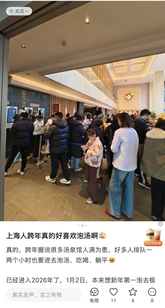 澎湃新闻注意到,在多个社交平台上,不少网友发布的照片显示,洗浴中心消费者“爆满”,门口甚至需要排队一两个小时进入。