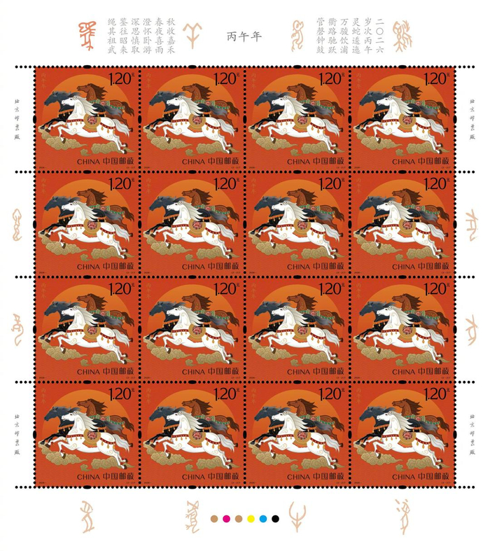 2026年《丙午年》特种邮票今日正式首发。一枚名为《驰跃宏图》,彰显力量;一枚名为《万骏臻福》,体现温情。整套邮票设计线条灵动,骏马姿态昂扬。