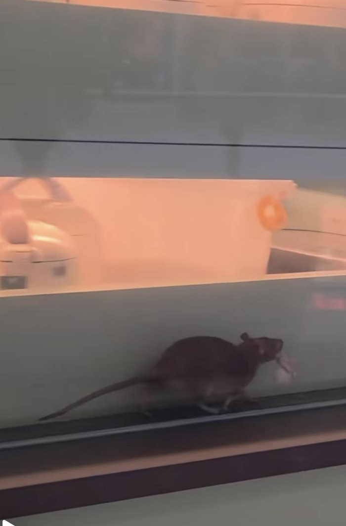 1月4日晚,有网友在某平台发布的视频显示,天府和悦广场一餐厅后厨玻璃窗槽内,有老鼠叼着食物来回跑。该网友配文称,这个店并不是个别现象,毕竟老鼠会到处跑。