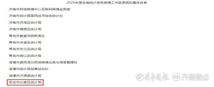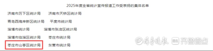 2025年以来,山亭区统计局认真贯彻落实区委、区政府决策部署,紧紧围绕服务经济社会发展全局,树牢“聚力攻坚 统计有为”理念,持续创新宣传方式、做优统计产品,全力抓好统计宣传、政务舆情工作,荣获全省统计宣传报道工作表现突出集体、全省政务舆情工作表现突出集体“两个省级先进集体”,并在全省统计领域政务舆情工作会议上作经验交流,全市唯一。