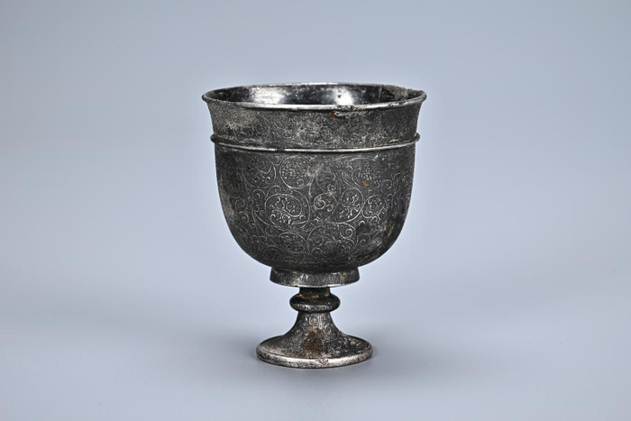 这是考古工作者在马三娘墓葬中发现的高脚杯。陕西省考古研究院供图2022年1月至2024年4月,为配合西安市长安区贾里村改造项目建设工程,陕西省考古研究院对项目用地范围内的古墓葬进行了发掘。其中编号为M228墓葬的墓主马三娘,为左率府翊卫陇西董顺先夫人,葬于大周圣历元年(698年)。墓葬出土有陶瓷器、铜器、铁器、金银器、石器等19件(组)。其中,金梳背、银三足罐、银高足杯等金银器非常精美。