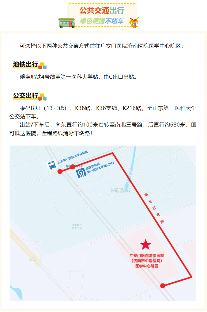 准备前往广安门医院济南医院医学中心院区就医?不知道选哪种出行方式最方便?别担心!这份公共交通、自驾超全攻略,一次性帮您理清,让您轻松到院不迷路!