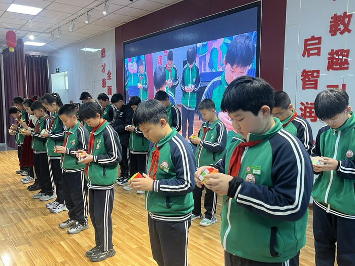 本次活动的开场表演是由教师代表带来的舞蹈表演和舞龙表演,她们以一抹亮眼的红色为新的一年带来了温馨的祝福和美好的期许。数学故事大赛的优秀选手为大家带来了精彩的数学故事。他们用稚嫩的语言和丰富的肢体动作将全场观众带入了充满奇思妙想的数学故事王国。本次联欢会精心设计了互动环节:数独闯关游戏,由主持人带领大家在数字的世界里开启趣味冒险。随后,由1—5年级的学生为大家带来了不同的益智课程展演,指尖翻飞间,九连环次第解开,魔方极速归位,汉诺塔层层递移。
