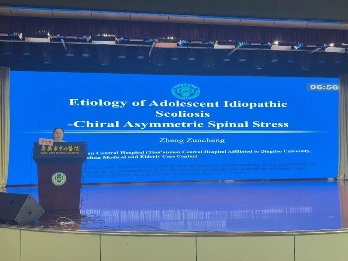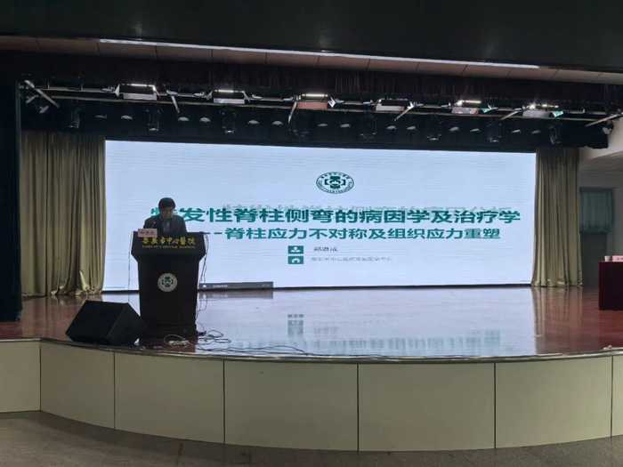 泰安市中心医院郑遵成教授以《特发性脊柱侧弯的病因学及治疗学--脊柱应力不对称及组织应力重塑》为题作专题报告。他从手性对称原理出发,深入分析了脊柱生物力学中的应力不对称现象,为青少年特发性脊柱侧凸的病因学研究提供了新的视角。