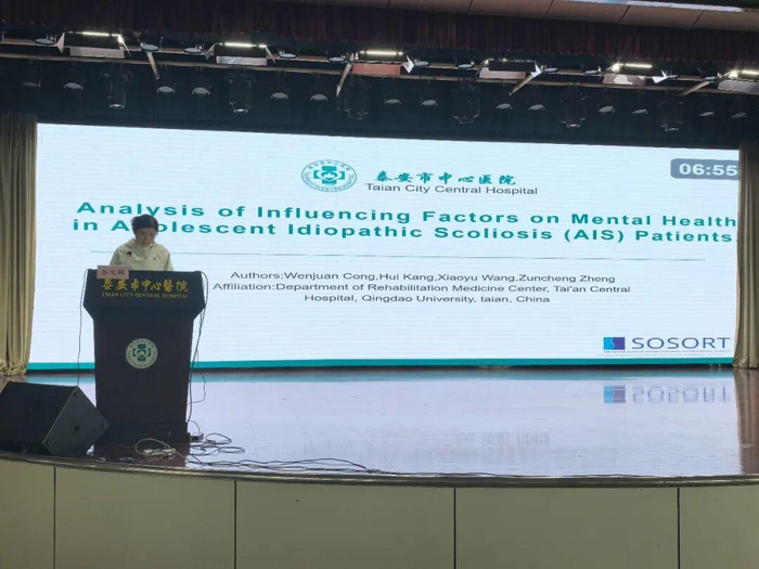 丛文娟汇报题目为《Analysis of factors influencing the psychological health status of adolescent idiopathic scoliosis patients》(青少年特发性脊柱侧凸患者心理健康状况的影响因素分析)。