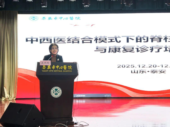 泰安市中心医院党委副书记、院长王兴玲出席并致辞,她对康复医学中心在脊柱健康,尤其是青少年脊柱侧凸问题中做出的贡献给予了高度肯定,并强调,关注脊柱,就是守护民族的未来;呵护青少年,就是培育明天的希望,希望康复医学中心以此次培训为新的起点,持续发挥区域引领作用,勉励全体学员将所学所悟转化为守护青少年脊柱健康的具体行动,共同为提升全民健康水平、培育体魄强健的下一代贡献力量。