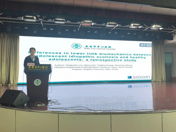 罗丁元汇报题目为《Differences in lower limb biomechanics between adolescent idiopathic scoliosis and healthy adolescents: a retrospective study》(青少年特发性脊柱侧凸与健康青少年下肢生物力学差异的回顾性研究)。