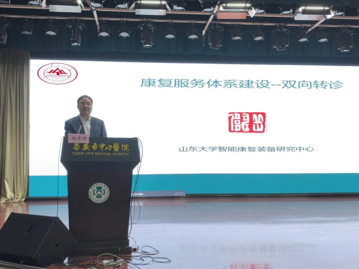 国内知名康复专家中国康复医学会副会长,中华医学会物理医学与康复学分会十一届主任委员,山东省康复医学会常务会长岳寿伟教授发表了题为《康复服务体系建设—双向转诊》的开场报告。他系统阐述了双向转诊在康复服务体系中的关键作用,强调了分级诊疗和资源共享的重要性,为优化患者转诊流程提供了实践指南。