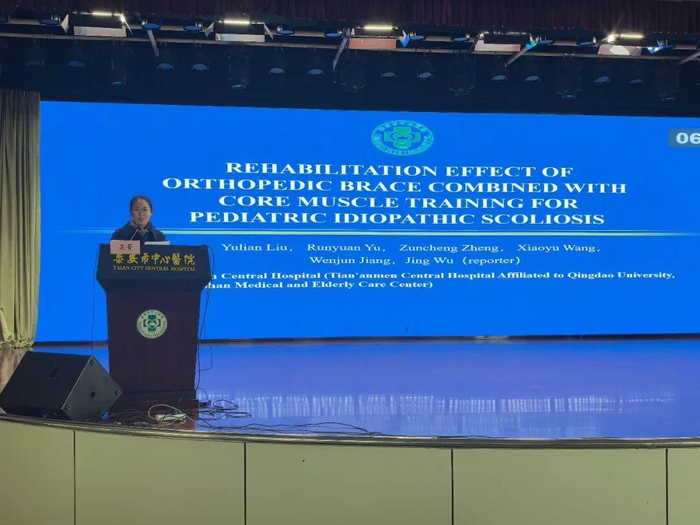 吴菁汇报题目为《Rehabilitation effect of orthopedic brace combined with core muscle training for pediatric idiopathic scoliosis》(骨科支具联合核心肌群训练治疗小儿特发性脊柱侧凸的康复效果)。