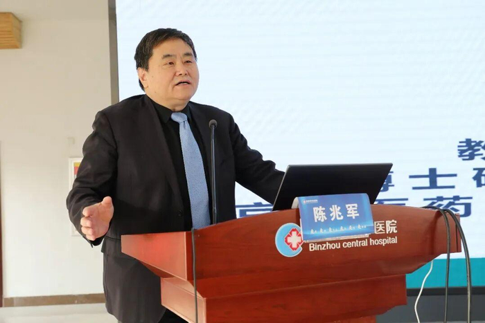 北京中医药大学第三附属医院密云院区院长、骨科中心主任陈兆军教授,山东省医师协会医学科学普及分会主任委员、山东大学齐鲁医院中毒与职业病科主任菅向东教授,滨州医学院烟台附属医院手足足外科主任、中心实验室主任、科技处处长徐林教授,滨州医学院附属医院张国辉教授,滨州市科学技术协会党组成员、副主席宋士波,惠民县科学技术协会党组书记、主席张连涛等领导和专家出席会议并致辞,会议由医院党委副书记姚宪亮主持。