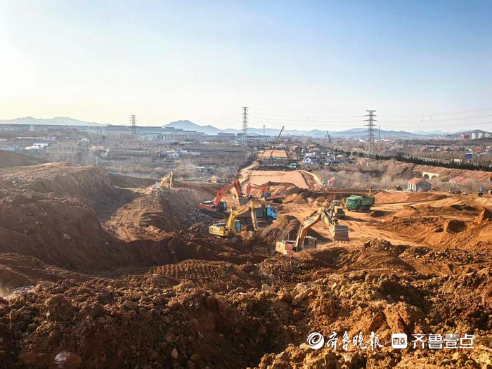 1月8日,在原烟台南站东南约5公里处的施工现场,寒意袭人却热火朝天,大型机械轰鸣作业,施工人员在基坑中忙碌穿梭。