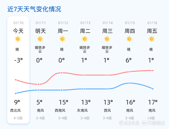 今天是1月10日,星期六,农历十一月廿二。菏泽市今日天气晴朗,气温范围在-3℃至9℃之间,当前温度为1.6℃,西北风1级,空气湿度34%,PM2.5指数为145。全市各区均以晴朗天气为主,适宜市民户外活动。