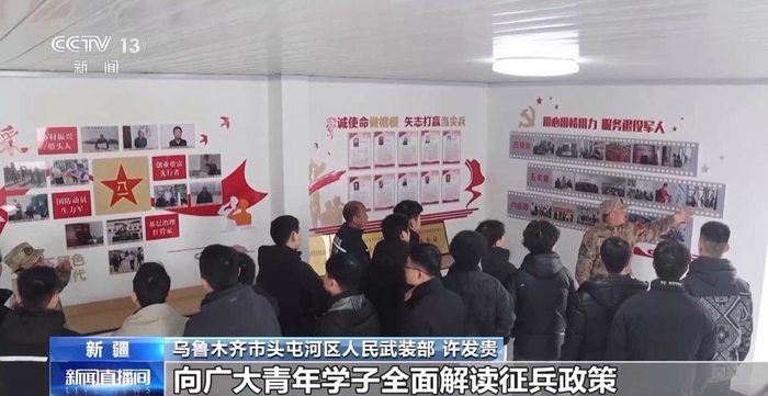 乌鲁木齐市头屯河区人民武装部 许发贵:我们通过多渠道、多形式开展征兵宣传,向广大青年学子全面解读征兵政策,以高质量宣传工作吸引更多优秀大学生携笔从戎,为军队建设发展提供坚强人才支撑。