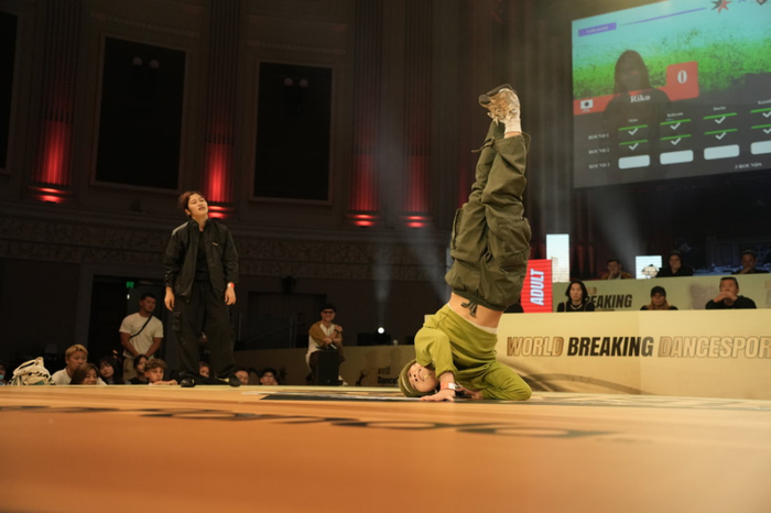 郭朴(右)在女子组决赛中在女子个人项目比赛中,郭朴一路强势晋级。决赛中,她战胜了前不久在红牛BC One(霹雳舞最高级别赛事之一)比赛中获得冠军的日本选手津波古梨心。郭朴在赛后表示,自己在决赛前比较紧张,但她并未花费太多精力专注于对手身上,而是选择做好自己比赛的内容,“今天在音乐方面发挥得比较好,希望下次比赛的时候能再放松一点。”