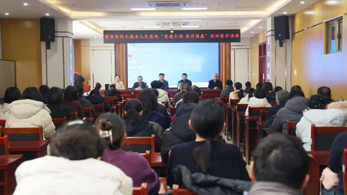 会上,滨医附院派驻帮扶队员老年医学科孟晓菲、心血管内科杨寿娟汇报了工作进展与实践成果。培训环节,滨医附院专家团队精准对接无棣县人民医院实际需求开展专题讲座,共有87名医务人员参加培训。医务处副处长杨淑野讲授《推进卒中、胸痛、创伤中心建设创建百姓信赖的品牌医院》;医务处王德梅分享《病案全流程质控体系建设与实践》;药学部马静以《精准打击:选对武器,别让细菌笑到最后——抗菌药物合理应用》为题进行专业解读。