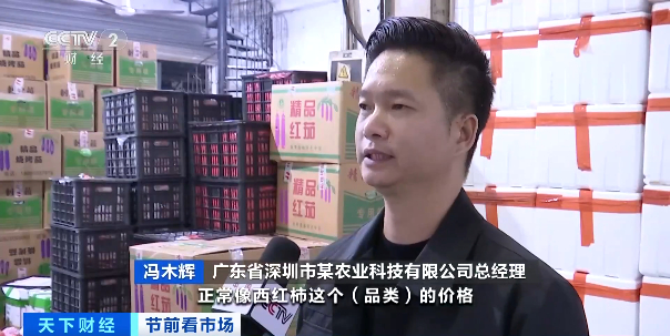 广东省深圳市某农业科技有限公司总经理 冯木辉:西红柿这个品类的价格,一般是2元左右一斤。今年前段时间价格卖到5元多一斤,这两天有所下降,还卖到每斤4.5元左右的批发价。