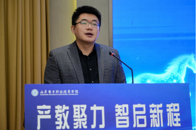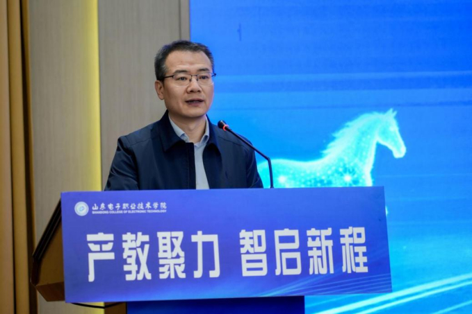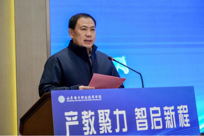 张建臣在致辞中向莅临现场的各位领导、嘉宾和参会代表表示热烈欢迎。他系统回顾了山东电子职业技术学院在电子信息职业教育领域的深耕历程与探索实践,详细介绍了学校近年来取得的丰硕成果,并郑重表达了深化产教融合、赋能产业发展的坚定决心与使命担当。