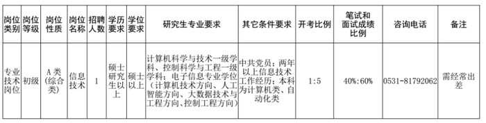 近日,山东省人力资源和社会保障厅发布2026年度省属事业单位公开招聘初级综合类岗位人员公告。其中,山东省应急管理厅所属事业单位山东省安全生产技术服务中心计划招聘工作人员1名。报考者可在2026年1月26日9:00至1月30日16:00期间,登录山东人事考试信息网报名。