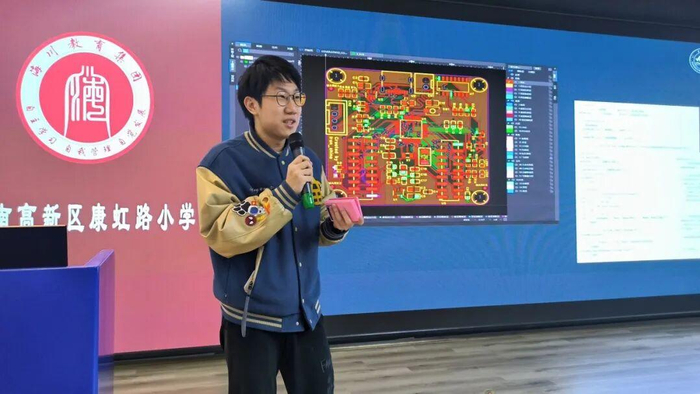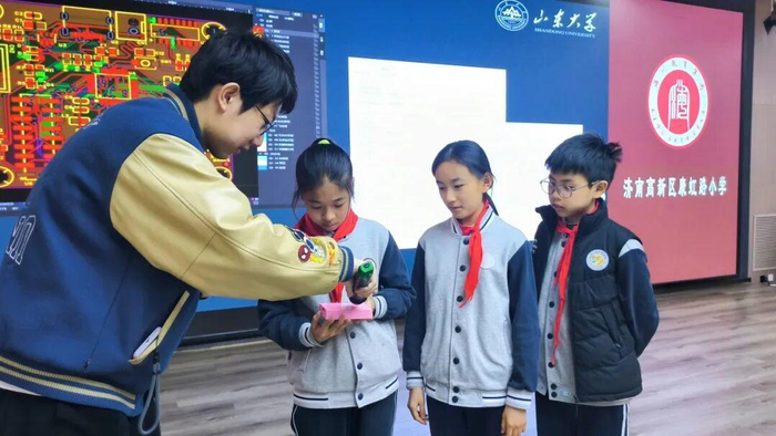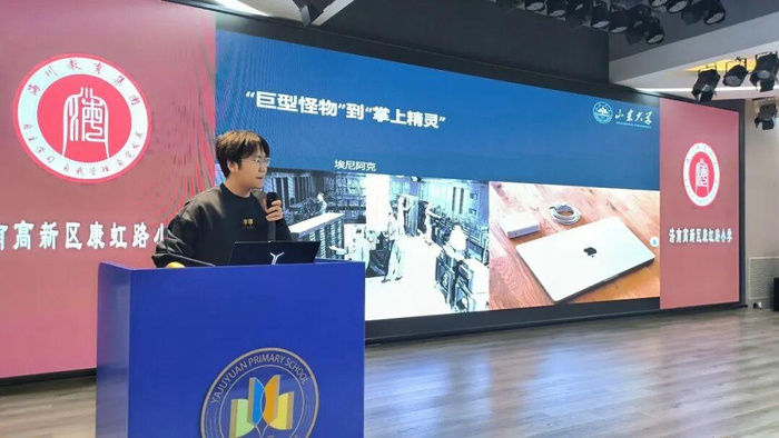 为点燃少年科技梦想,激发未来创新潜能,1月27日,济南高新区康虹路小学联合环保科技园社区,成功举办了一场别开生面的科技启蒙讲座。活动特邀山东大学集成电路学院的王荣翼、王天烨两位学子走进校园,为四至六年级的队员们带来一场关于人工智能、芯片技术与创新思维的精彩分享。