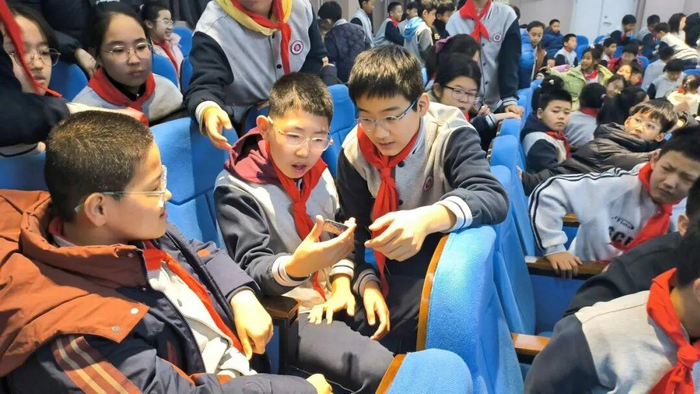 互动环节,两位主讲人围绕AI、无人机、芯片等科技话题与队员们展开问答。队员们踊跃提问:“芯片是怎么做出来的?”“无人机会自己思考吗?”……王荣翼与王天烨用通俗语言耐心解答,并鼓励大家提出自己的“科技节创意”。有队员设想“语音控制书包”,有人提出“自动捡垃圾机器人”,主讲人一一给予肯定与建议,现场气氛热烈。