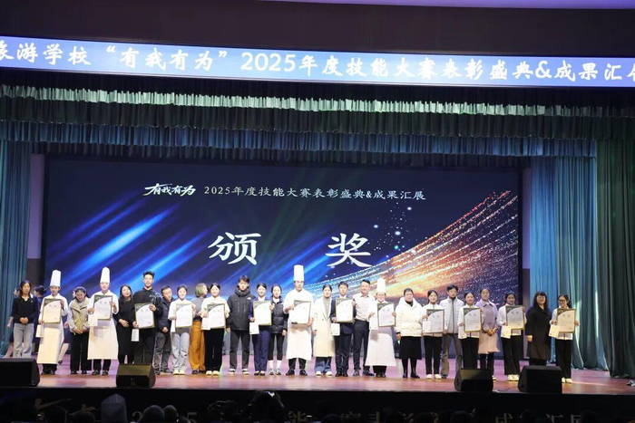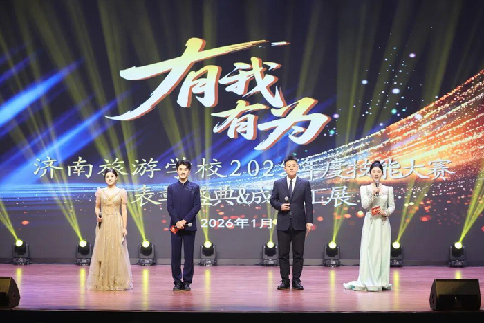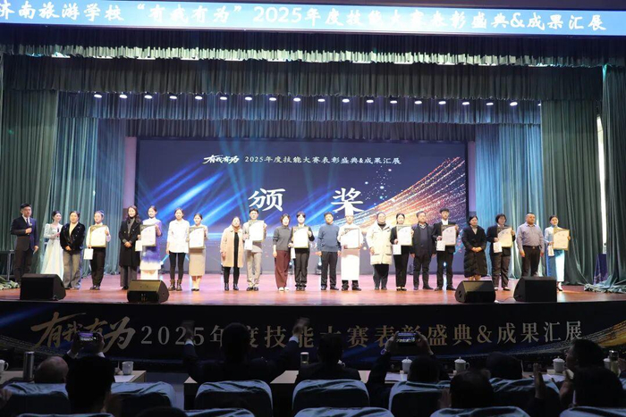 1月28日下午,济南旅游学校2025年度技能大赛表彰盛典暨成果汇展在师范校区尽美报告厅举行。表彰典礼以“有我”“绽放”“传承”“共育”为主线,融合技能展示与颁奖表彰,全面展现学校育人成果与师生风采。