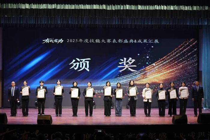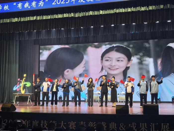 活动中,学校集中表彰了在2025年度各级技能大赛中取得优异成绩的学生。本次颁奖特别邀请获奖选手的家长上台,亲手为自己的孩子颁发荣誉证书,不仅体现了家校共育的合力,也让荣誉时刻更添亲情温度与成长意义。