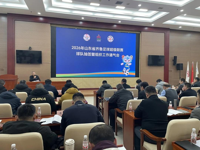 1月30日,2026年山东省齐鲁足球超级联赛球队抽签暨组织工作通气会在济南如期举行,来自全省16市的赛事负责人齐聚一堂,通过抽签确定新赛季主客场对阵格局,标志着这项覆盖全域、全民关注的省级足球盛宴正式拉开全新帷幕。以“齐鲁青未了,山海共荣耀”为主题的2026赛季,在赛事组织、赛制设计、球迷服务等方面推出系列创新举措,将为齐鲁大地带来贯穿全年的足球盛宴。(宋莹)