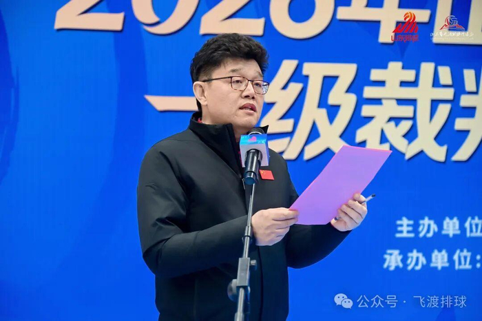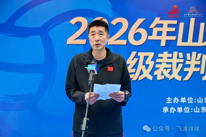 1月30日晚,2026年山东省气排球一级裁判员培训班在济南市妇女儿童活动中心体育馆举行开班仪式。山东省排球运动管理中心副主任安家杰发表重要讲话并宣布开班,他希望通过本次培训,学员们提升执裁水平,助力山东气排球迈向更高台阶。
