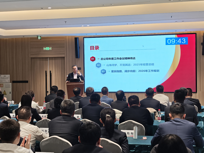 面向2026年,赵卫军总经理系统部署了分公司发展规划:一是明确可持续、高质量的发展目标;二是全力推动队伍能力与素质的成长;三是对各级干部提出更高标准的担当与作为要求;四是优化资源配置,提升经营效能;五是坚持在合规底线之上,勇于创新,开拓进取。他明确提出“新山分、新百年、新机遇、新发展”的奋进号召,将2026年定位为山东分公司“大转折的起点,腾飞的起点”,并满怀信心地展望“2026,看山东”,激发了全体员工的使命感与奋斗豪情。