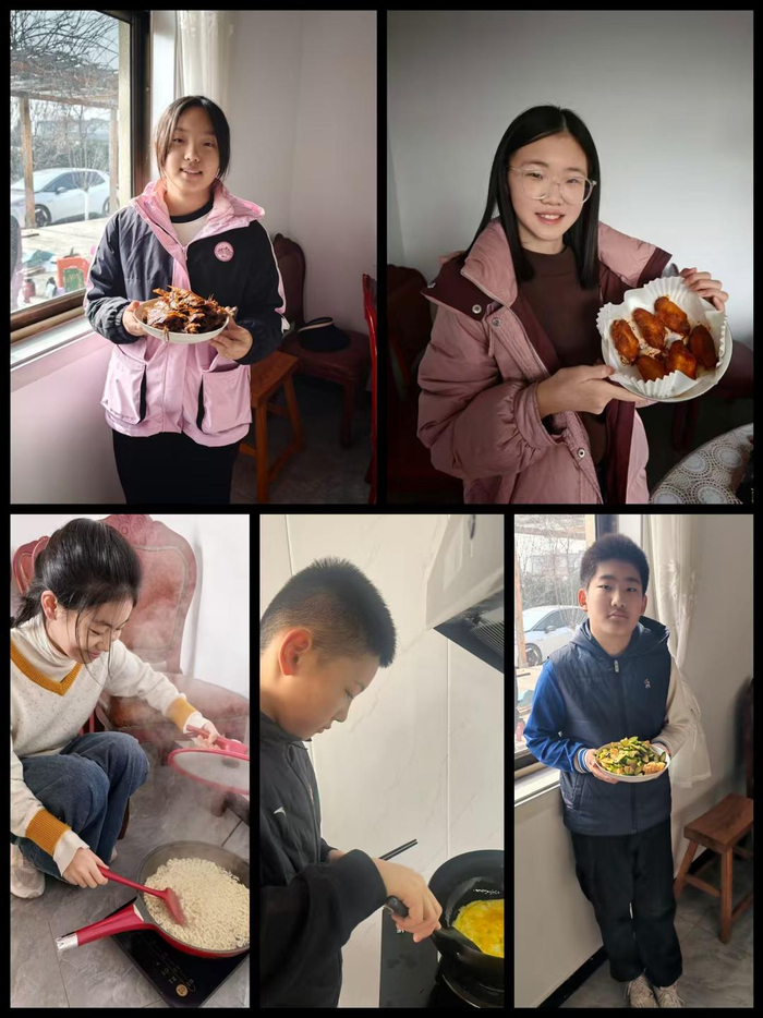 作为活动核心环节,“共做共享特色菜” 让小院化身生活教育课堂。露天灶台与厨房内炊烟袅袅、香气四溢,每组家庭自带食材,合力烹饪拿手佳肴。孩子们主动担纲 “主角”,在父母指导下系上围裙,洗手、切菜、调味一气呵成,炖排骨、烤鸡翅、凉拌时蔬、创意火鸡面等菜品陆续出锅。“这是我第一次独立完成一道菜!” 当孩子们骄傲地端出自己的 “作品” 时,家长们纷纷记录下这一难忘瞬间,这场充满烟火气的实践,让孩子们在劳动中收获自信与成就感,也让家长见证了孩子的独立与成长。