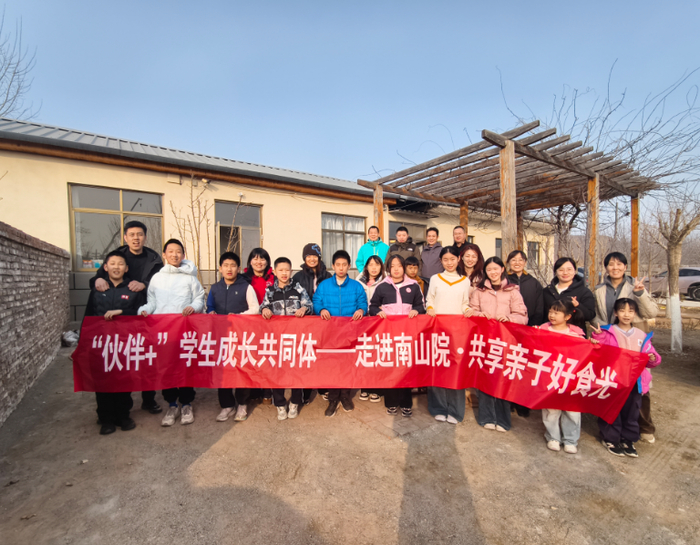 2026 年 2 月 1 日,济南南部山区波罗峪小院暖阳融融,高新区海川教育集团瀚阳学校七年级一班 “伙伴 + 成长共同体 共做共享好食光” 亲子活动在此温馨举行。在班主任王灏辰老师的组织下,十余组家庭走进自然、协作劳动、共享欢乐,以沉浸式实践践行济南高新区全环境立德树人 “三引导” 理念,为家校社协同育人写下生动注脚。