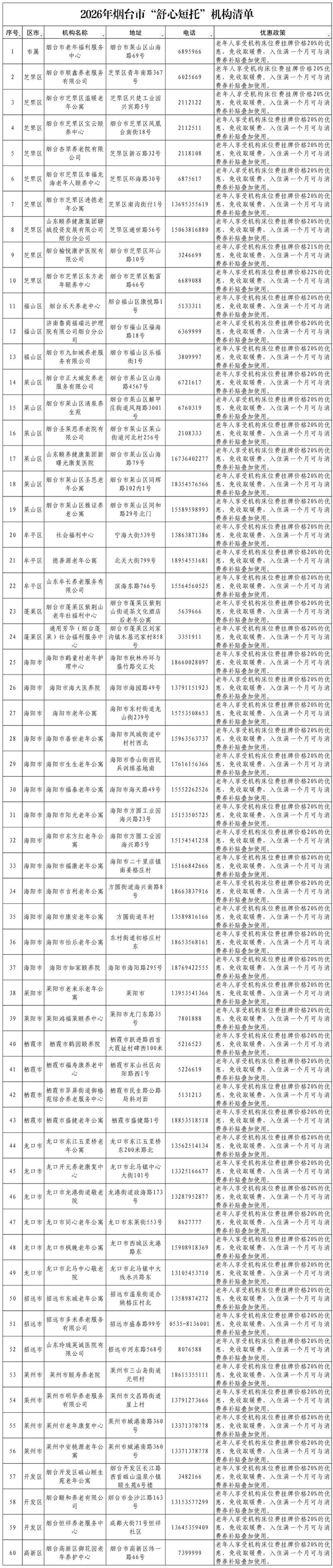“舒心短托”是烟台市民政局针对老年人家庭实际需求开展的短期托养服务,老年人可根据家庭情况,自愿选择入住定点养老机构,实现“短期托养、照护不断”。全市多家优质养老机构共同参与,专业安心。