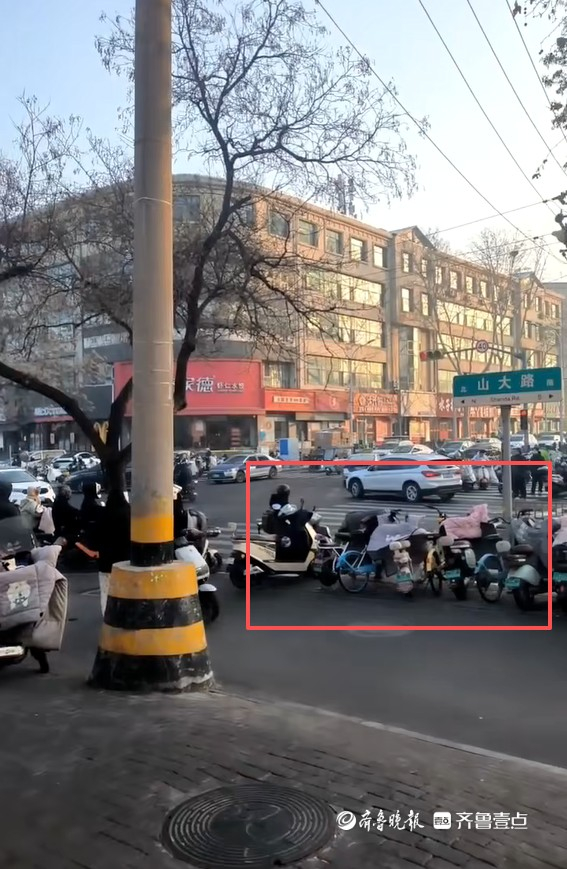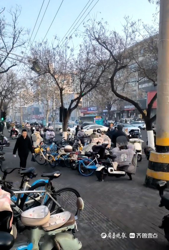 2月4日,情报员“Q35689”向齐鲁晚报官方客户端齐鲁壹点情报站发来一则情报,在济南山大南路与山大路交叉路口,人行道两侧存在乱停乱放自行车和电动车的情况,有的还把车辆停放到非机动车道上,影响市民通行,希望相关部门尽快处理。