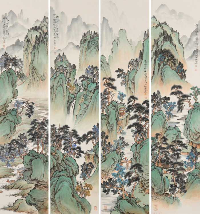 山水芳翠入云烟 100x23cmx4