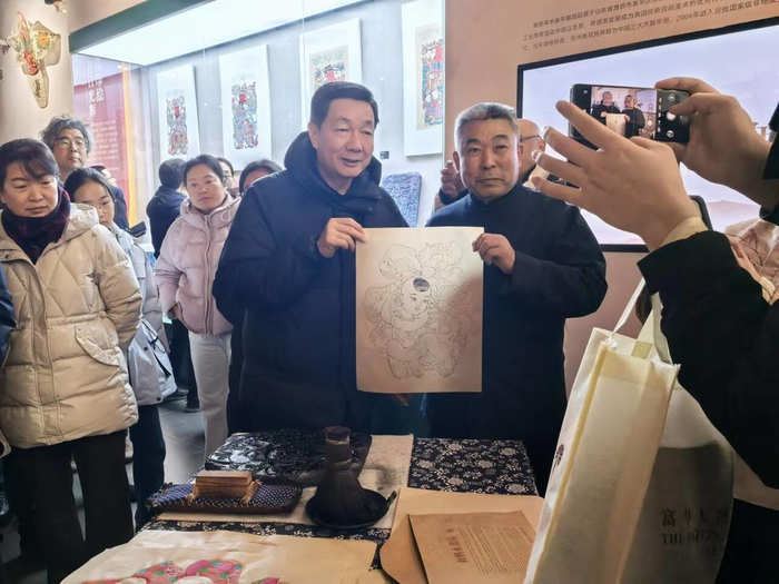他们或亲手刷出一幅象征“和平幸福”的杨家埠木版年画,或近距离观察一只由潍坊剪纸代表性传承人剪出来的和平鸽,又或是浅尝一口带着浓浓芝麻香的潍坊非遗景芝酒。以非遗为引,潍坊的和平文化基因在此刻正以一种独特的方式向来自全国的友人展示。作为潍坊国际和平文化推广年启动系列活动的一部分,“非遗里的和平”主题展览在这个夜晚,点亮了绚烂又夺目的第一页。