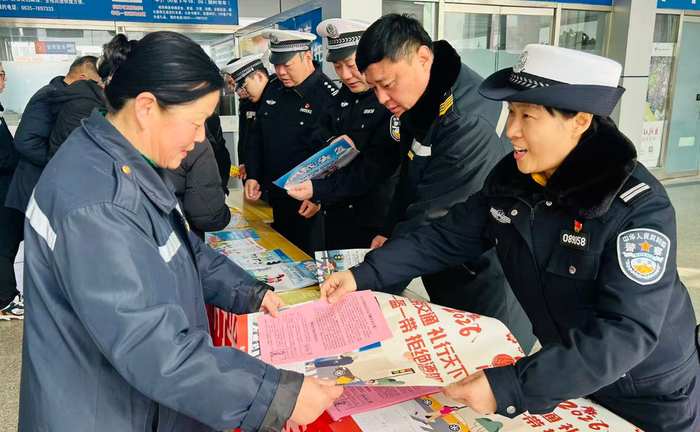 活动现场,宣传民警围绕“春运安全连万家,出行平安你我他”主题,在长途客运站设立交通安全宣传咨询台、摆放交通安全宣传展板、发放春运交通安全宣传资料,向广大群众讲解道路交通安全法律法规和冬季出行常识,宣传酒驾醉驾、超员超载超速、疲劳驾驶等交通违法行为的危害及后果,正确引导广大交通安全参与者自觉遵守交通法律法规,安全文明出行。同时,宣传民警走进候车厅向驾乘人员讲解“一盔一带”的重要性,要求客运驾驶人遵规守法恪守职业道德,谨慎驾驶,安全文明出行,提醒乘客安全带=生命带,出行时一定要系好安全,带共同创造良好的道路交通秩序。