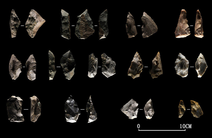 莫斯特技术风格石制品。(中国社科院供图)发现的小石叶技术,为华北乃至东亚最早。专家表示,小石叶技术被认为是早期现代人的典型石器技术,这为探索小石叶技术起源和华北早期现代人的石器技术模式提供典型材料。
